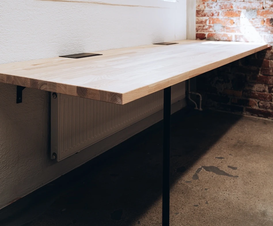4 tööpinda Euroopa saarest liimpuitkilpidest, viimistletud valge OSMO õliga. Sõrmjätkatud puit.