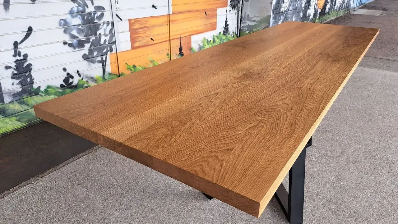 Tammest lauaplaat, suurus 900x2600 mm. Paksus 40 mm. Pika lamelliga, laiadest prussidest, kaetud naturaalse õliga (Borma).