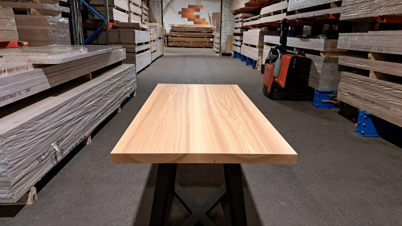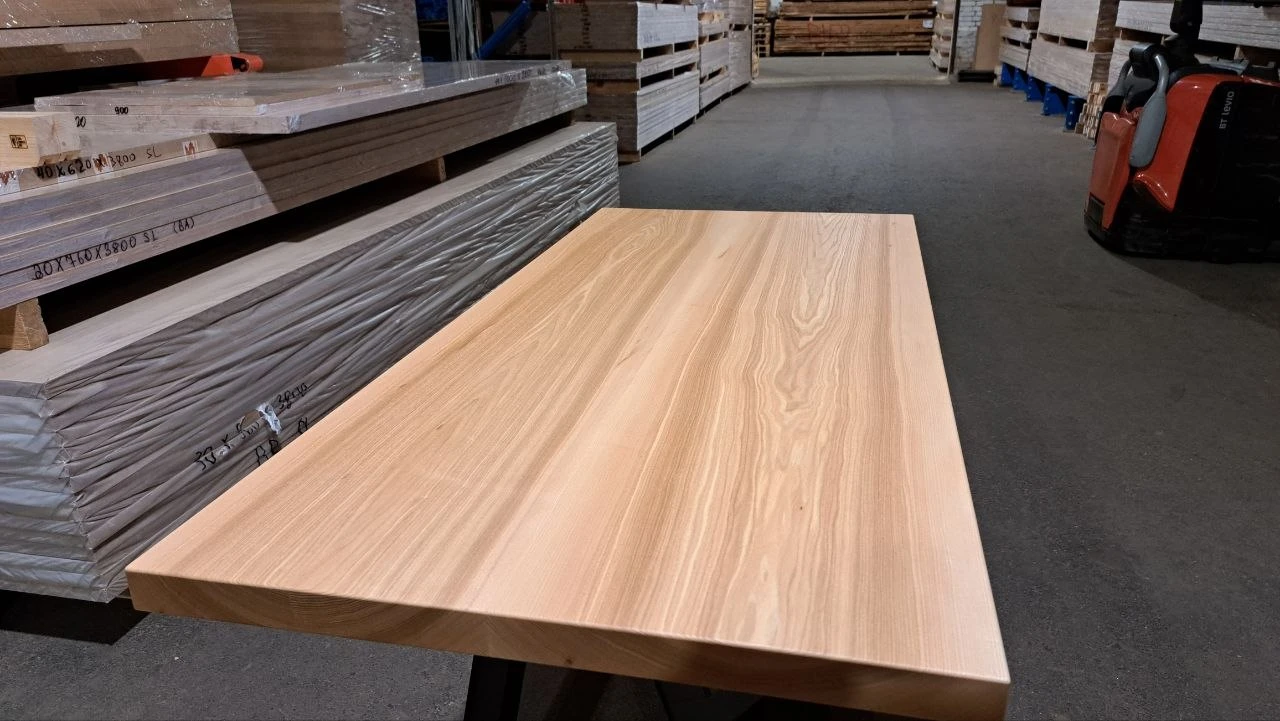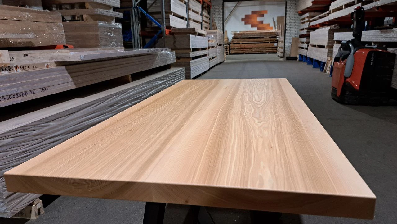 Galda virsma 40×650×1400 mm, izgatavota no Eiropas oša masīvkoka dēļiem, no divām pilna garuma daļām. Pārklāta ar Borma eļļu.