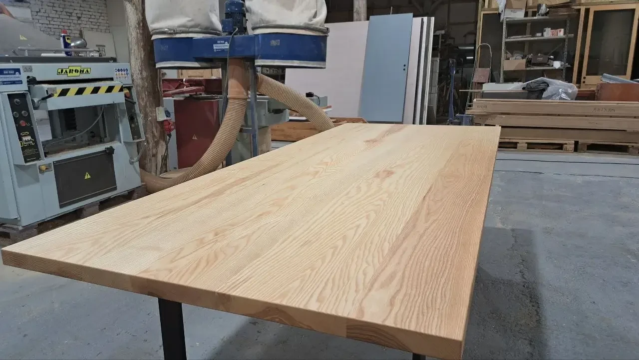 Galda virsma ir izgatavota no 180 mm platiem dēļiem. Sastāv no 5 gabaliem, 900 mm platums un 2100 mm garums.