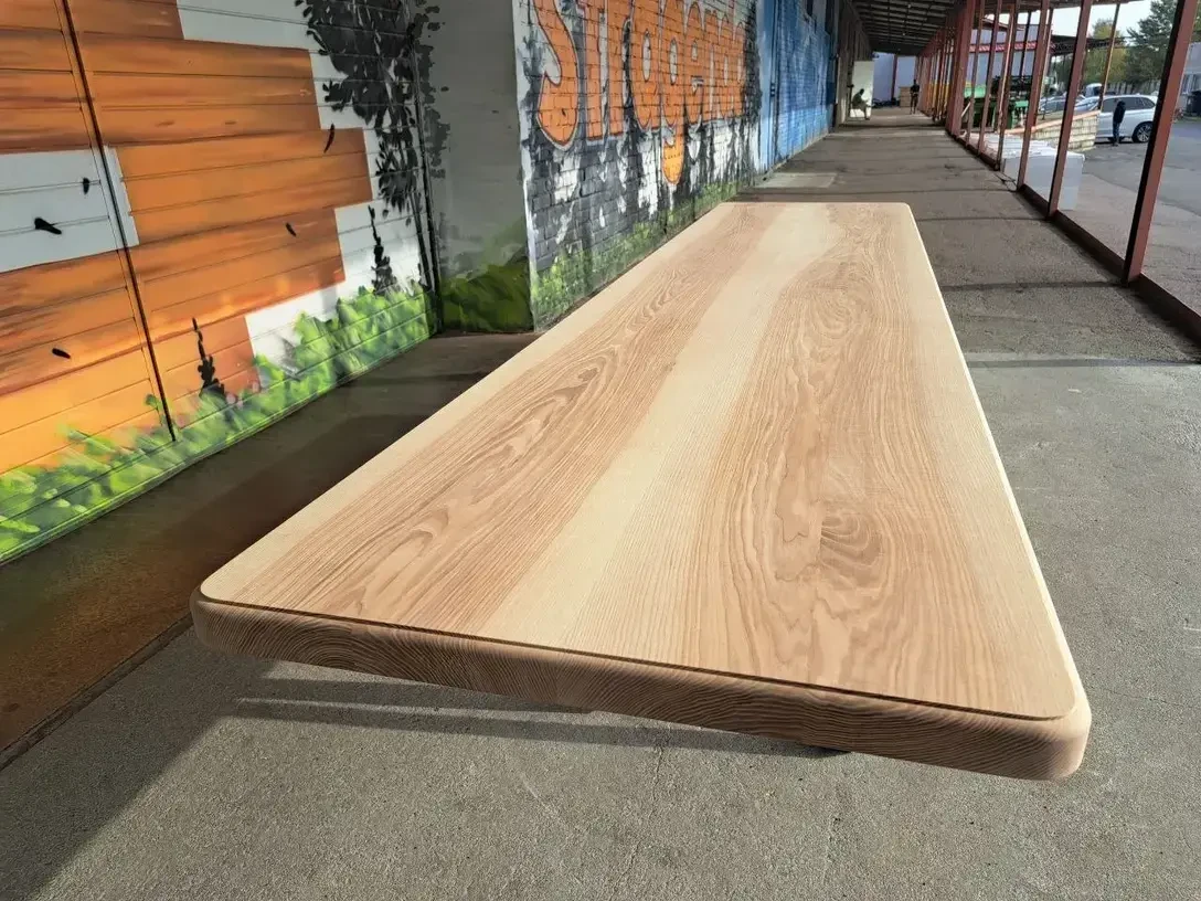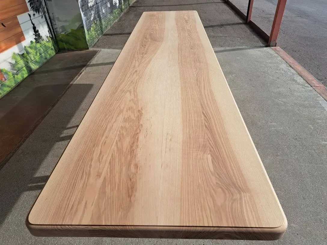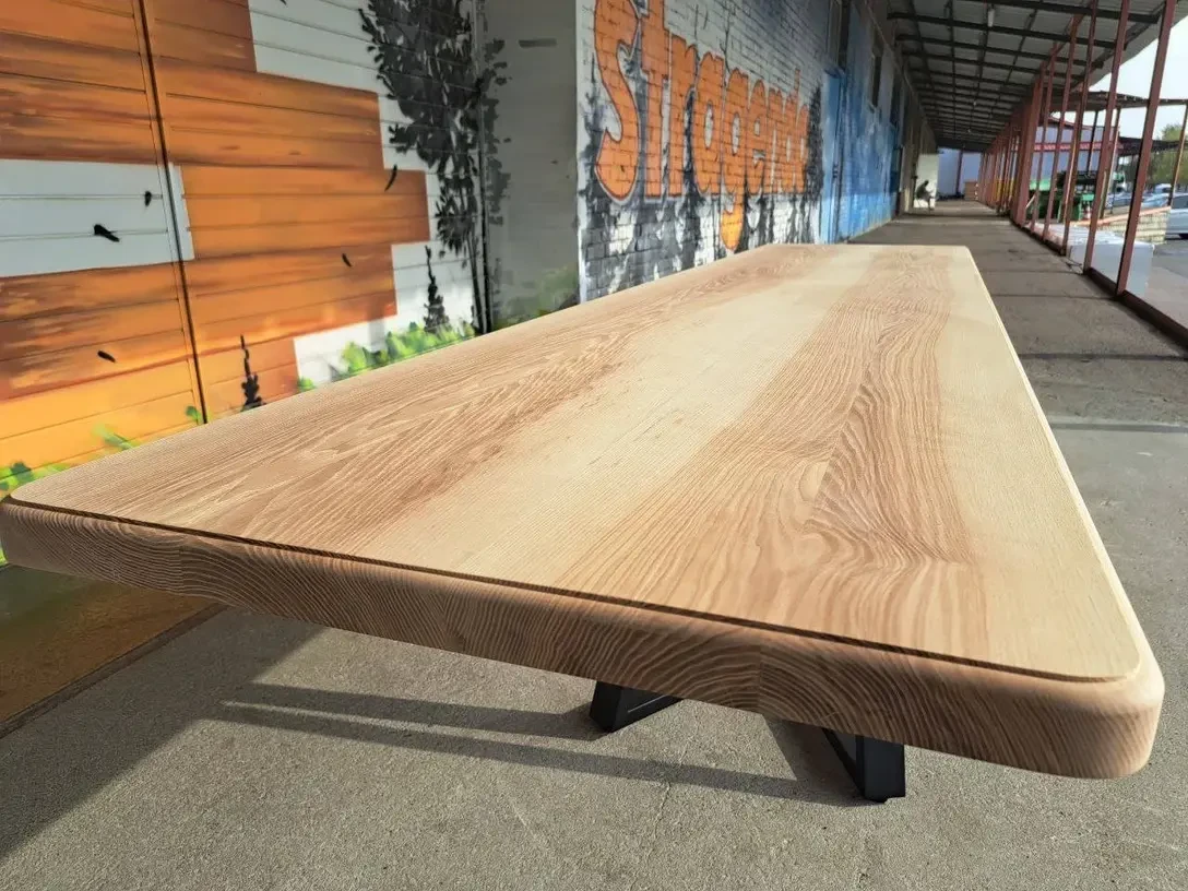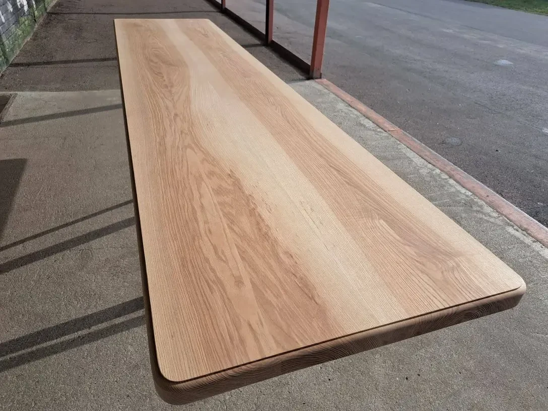 Virtuves galda virsma no Eiropas oša, 640x2700 mm. Nestiķēta, izgatavoti no platiem dēļiem. Noslīpēšana pārklājuma uzklāšanai. Īpaši rādiusi uz malām.