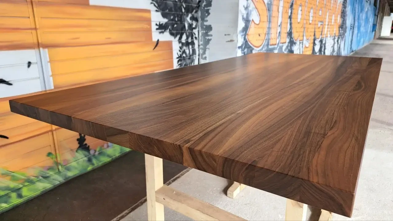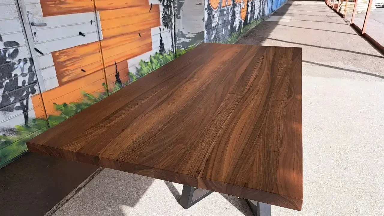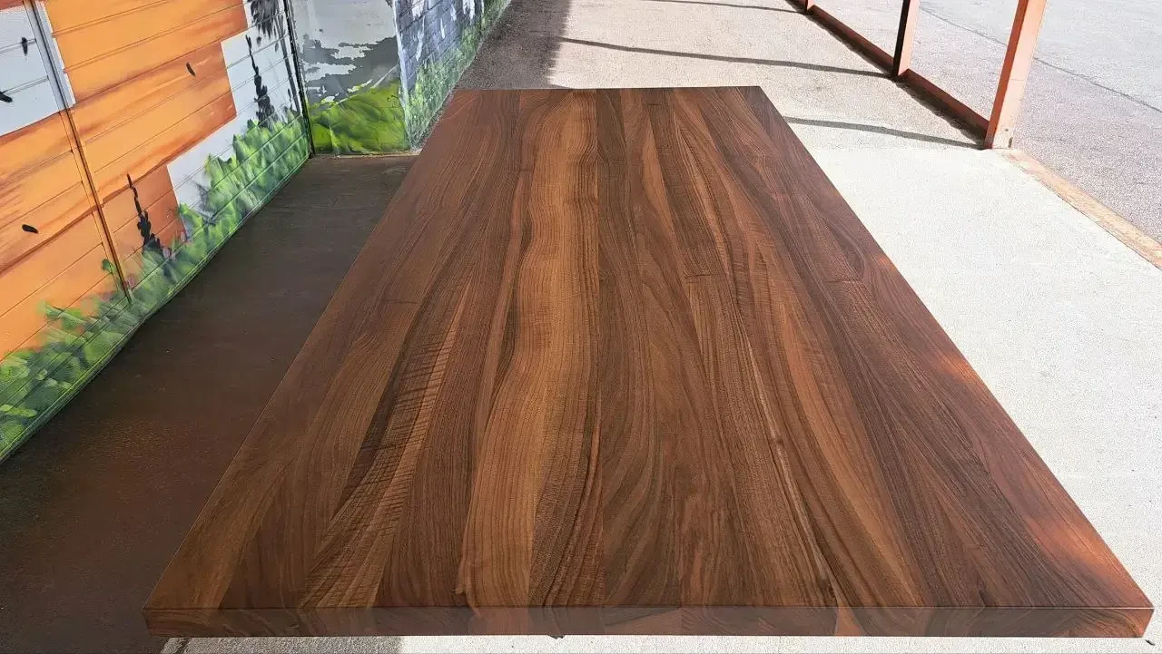 Pähkli lauaplaat, suurus 900x2000 mm. Paksus 40 mm. Valmistatud pikklamell kilbist, kaetud naturaalse õliga.