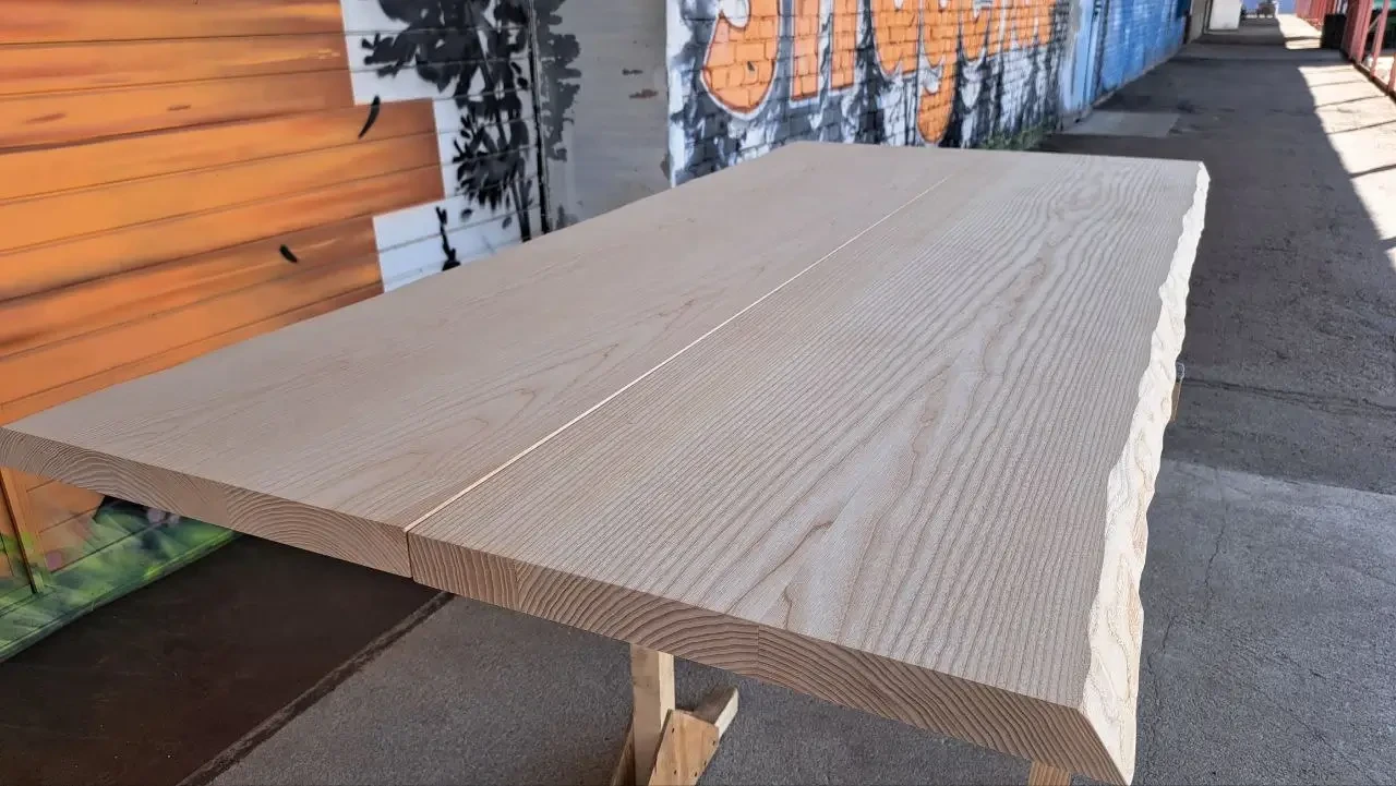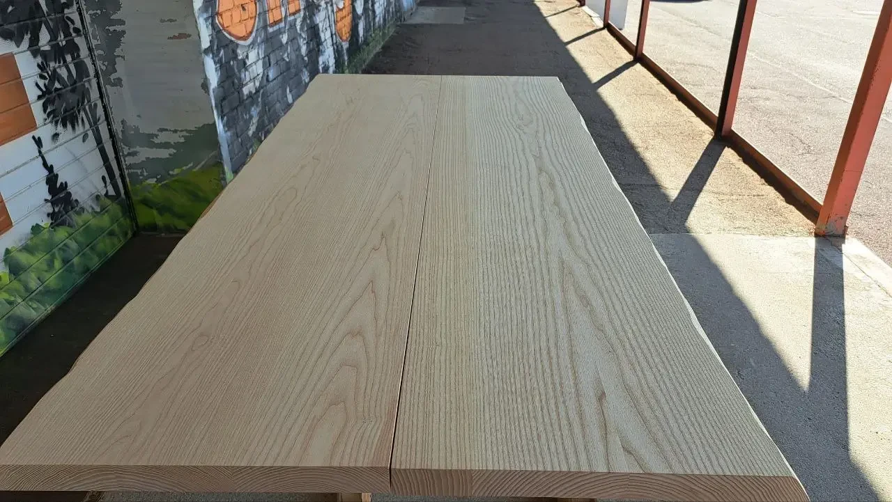 Saarest lauaplaat, 1000 x 2400 mm. Pika lamelliga, laiadest prussidest. Lihvitud viimistluseelsesse seisundisse. Serv freesitud erilise teraga.