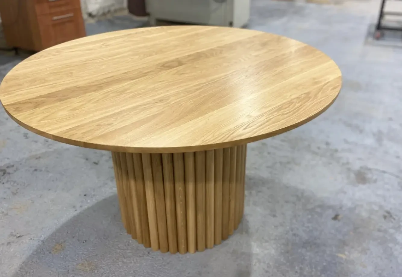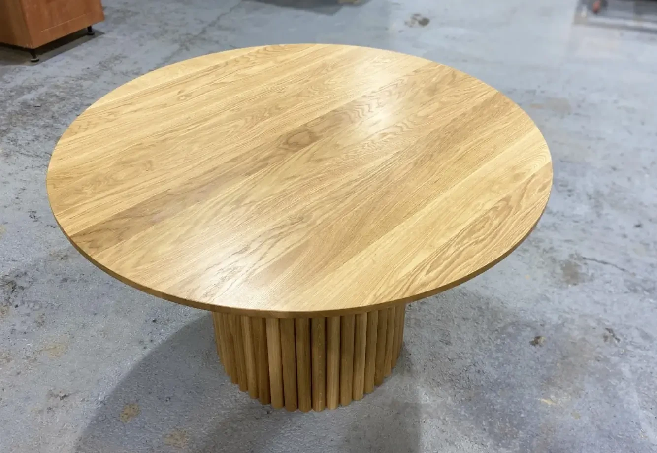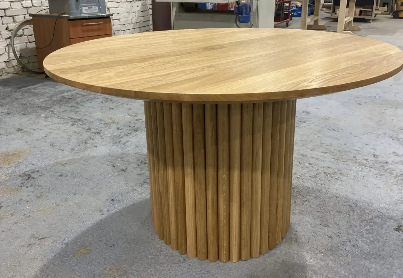 Tammest ümmargune laud, läbimõõt 1300 mm. 30 mm paksune lauaplaat. Kaetud loodusliku õliga.