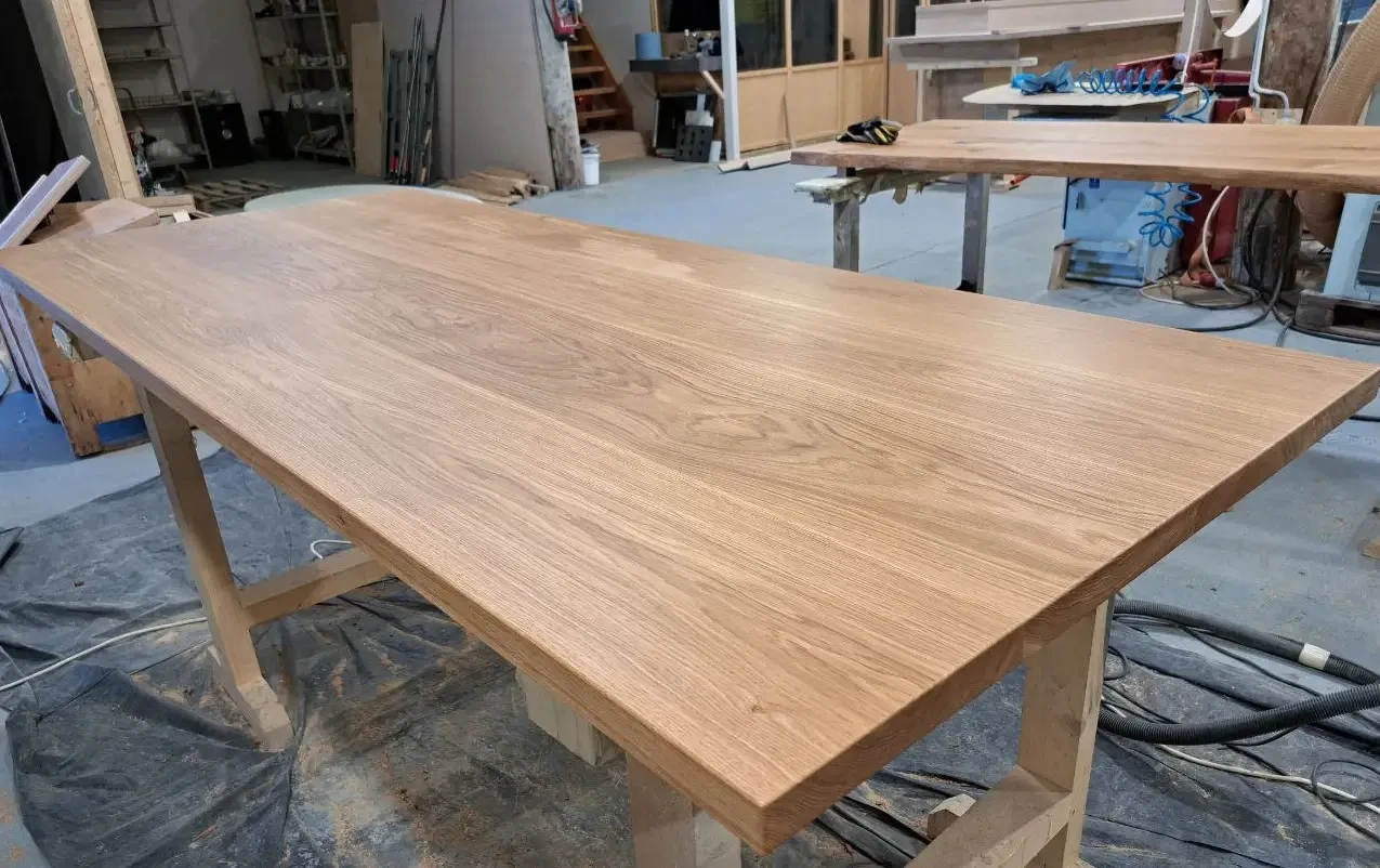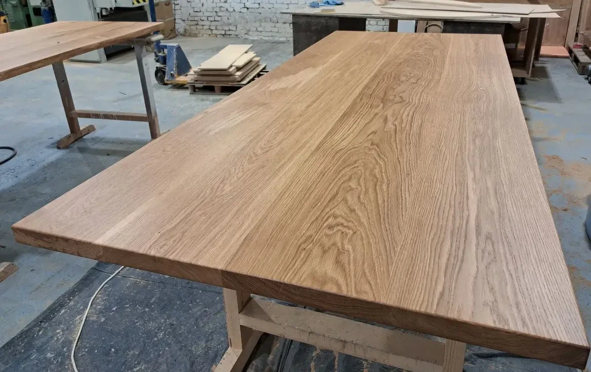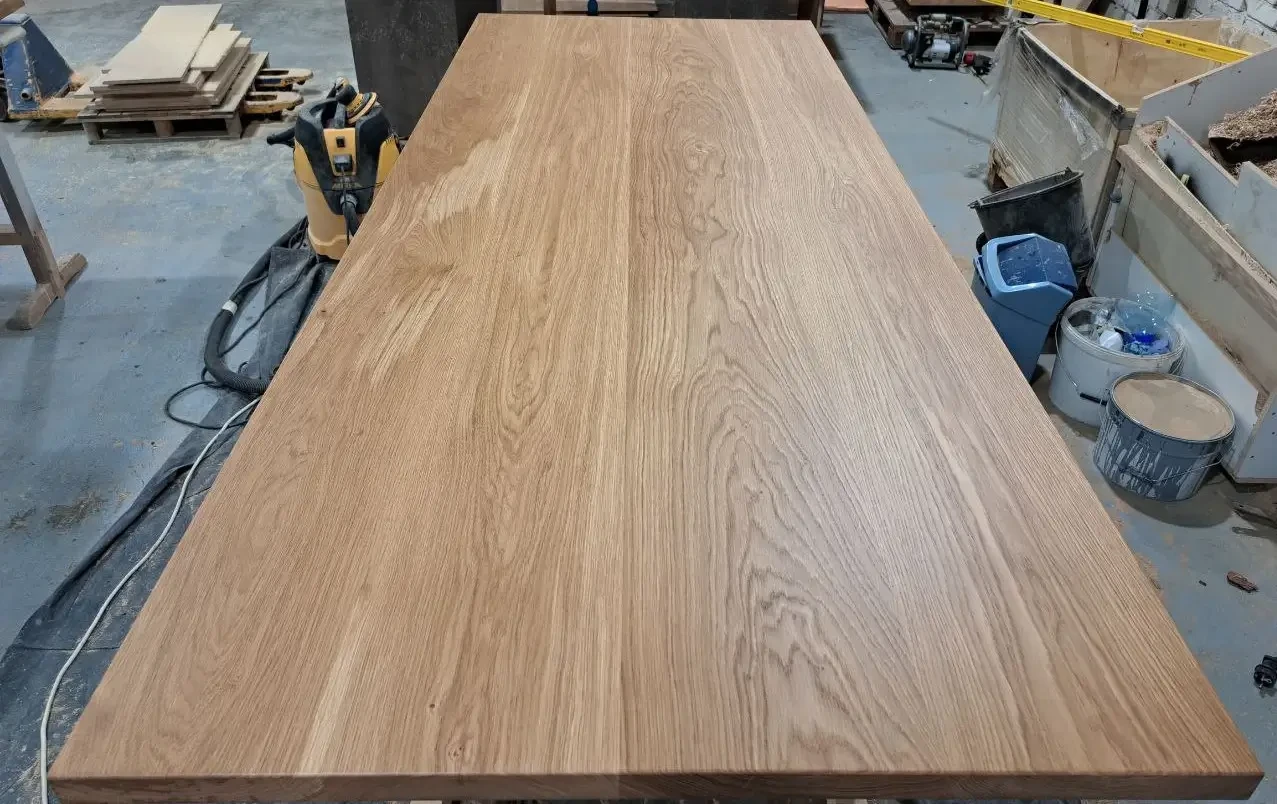 Столешница из дуба размером 1000x2400 мм. Толщина 40 мм. Сделана из мебельного щита, покрыта натуральным маслом.