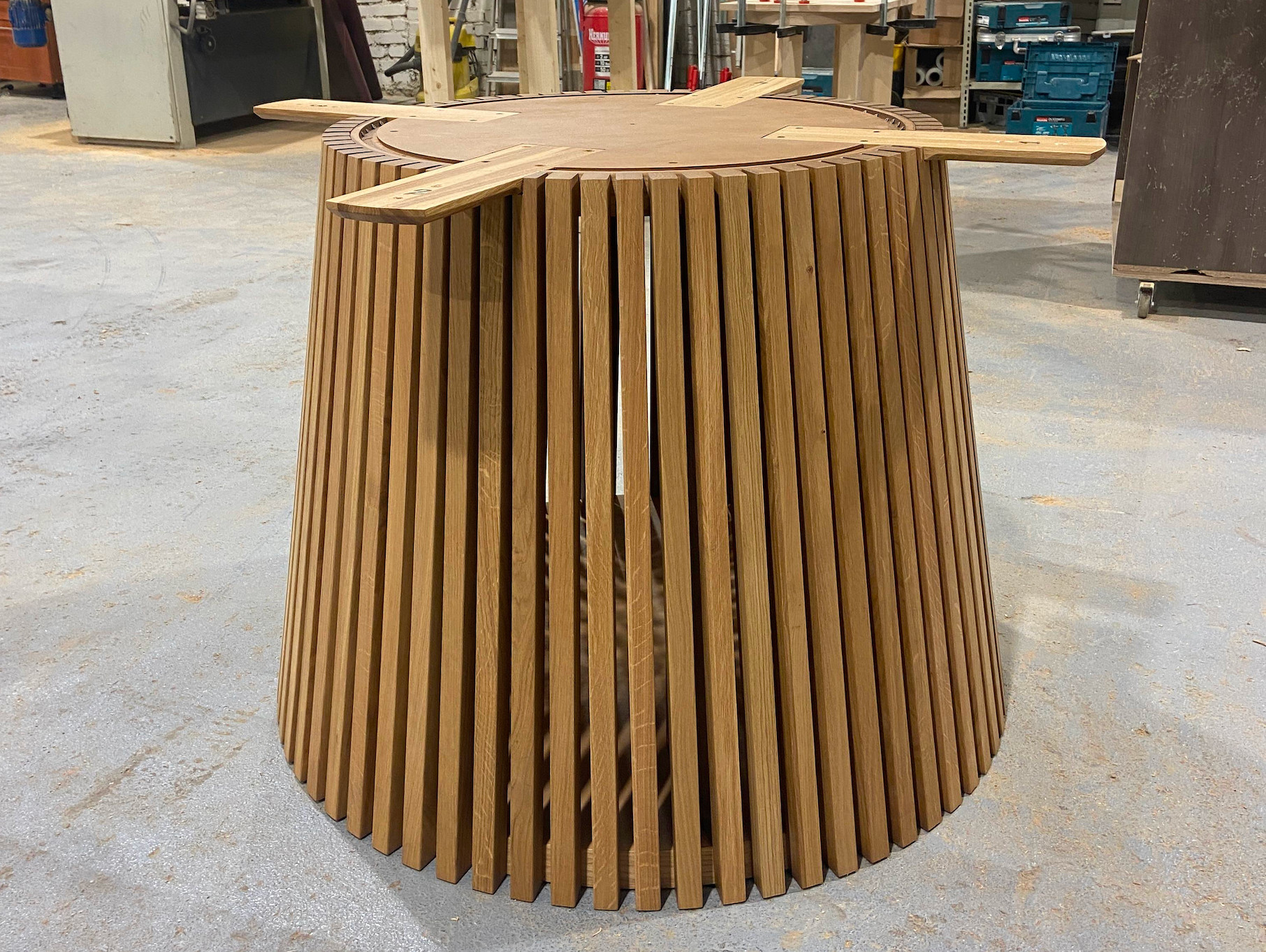 Ümmargune laud tammelauast, läbimõõt 1,1 m.